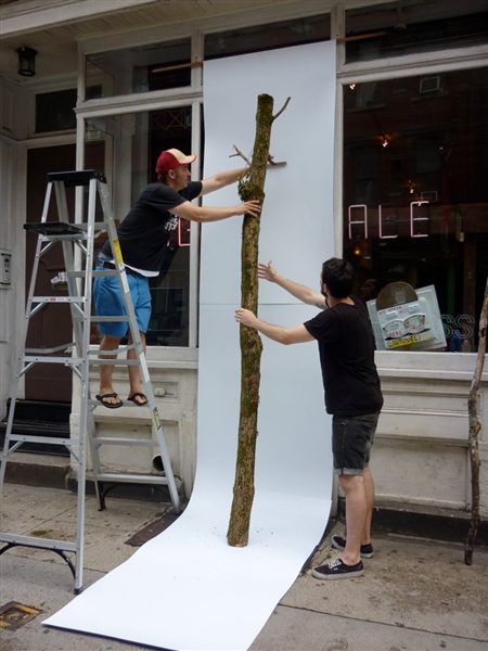Timber for sale. Fresh logs hauled from the Berkshire mountains are displayed for sale exclusively at Recess Activities, NYC.
